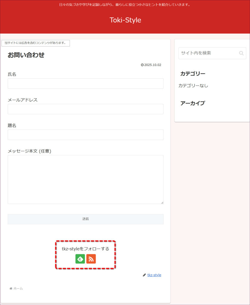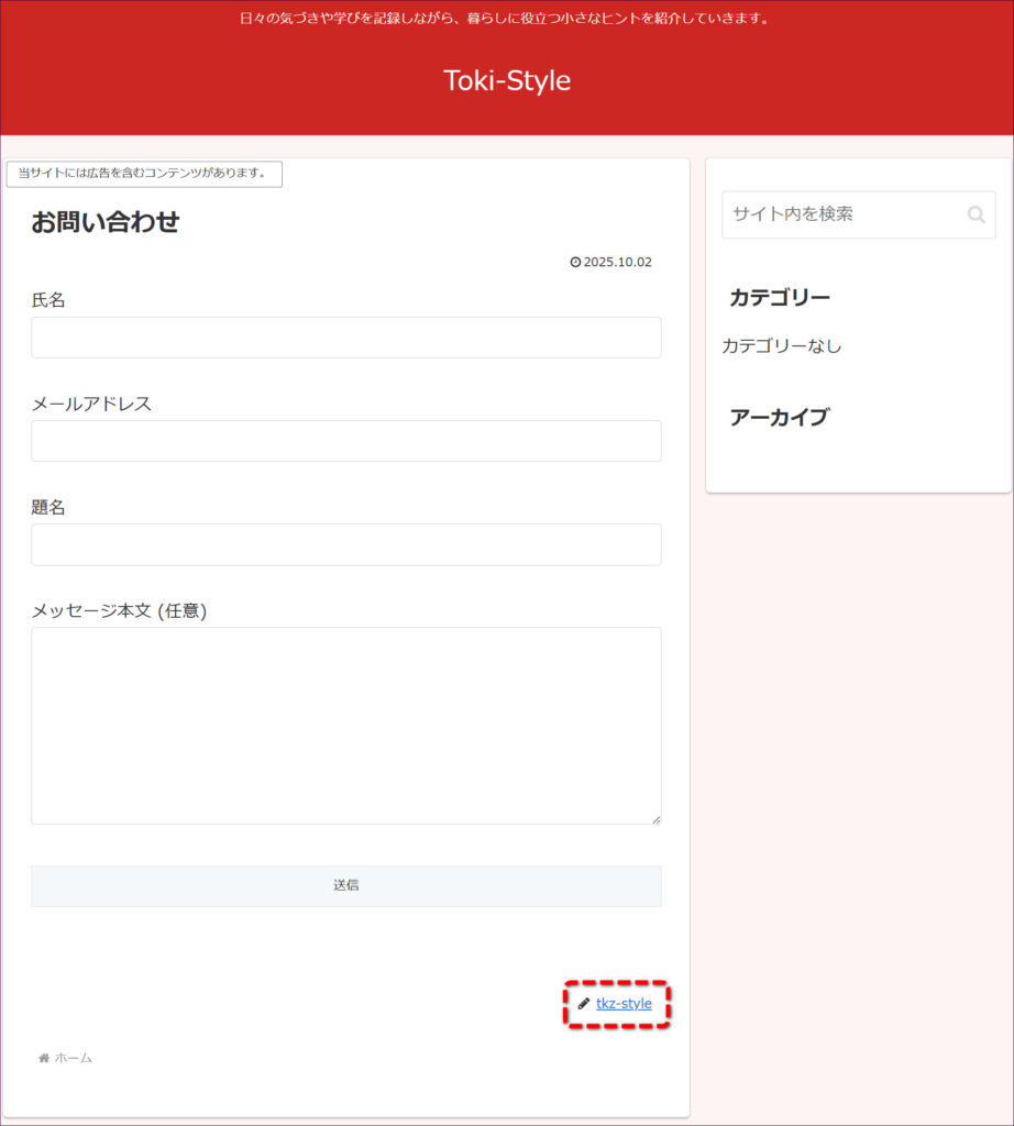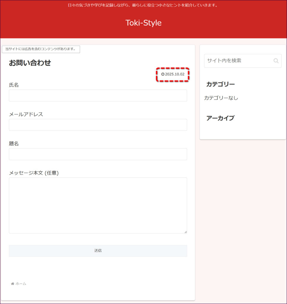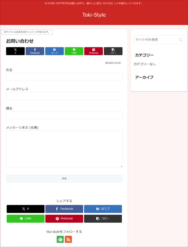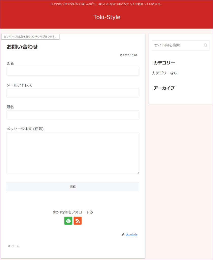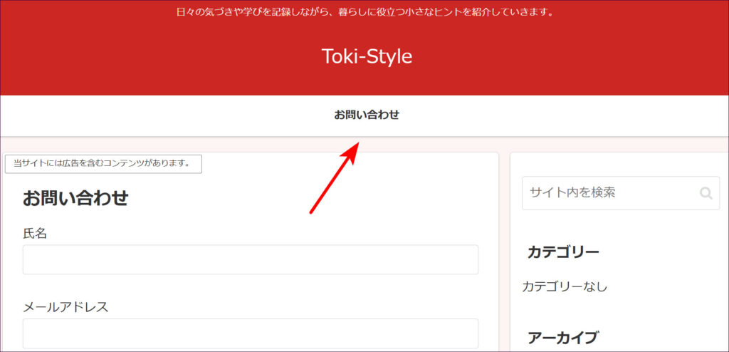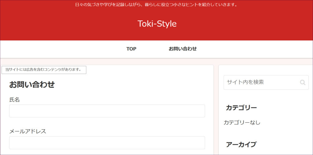 このように、お問い合わせフォームが設置されました。