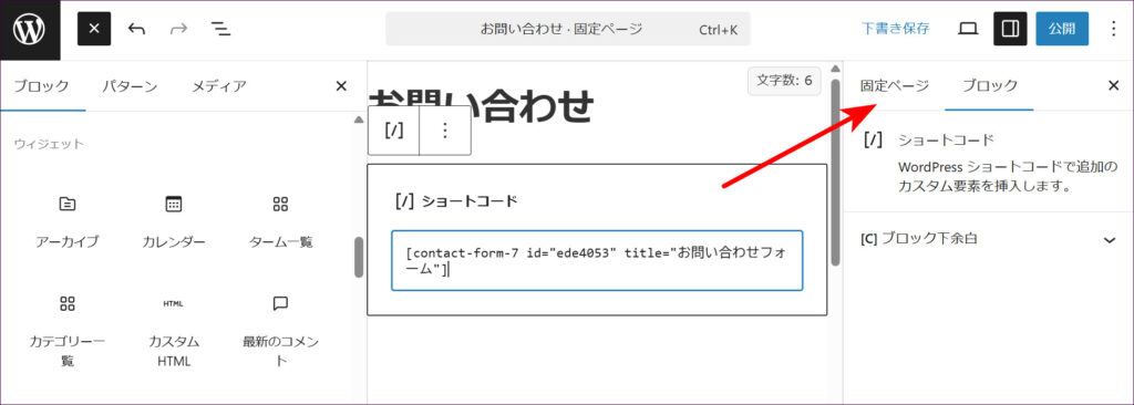次に、画面右上の「固定ページ」と書かれたタブをクリックします。