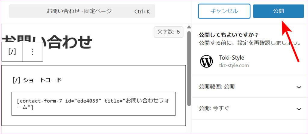 スラッグの入力が終わったら、画面右上の「公開」をクリックします。
