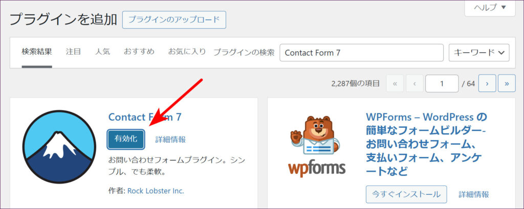 インストールが終わるとボタンが「有効化」に変わるので、クリックしてプラグインを有効にします。