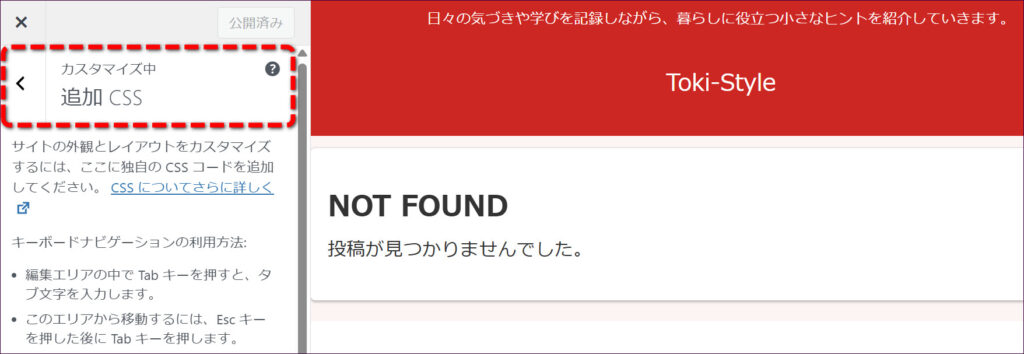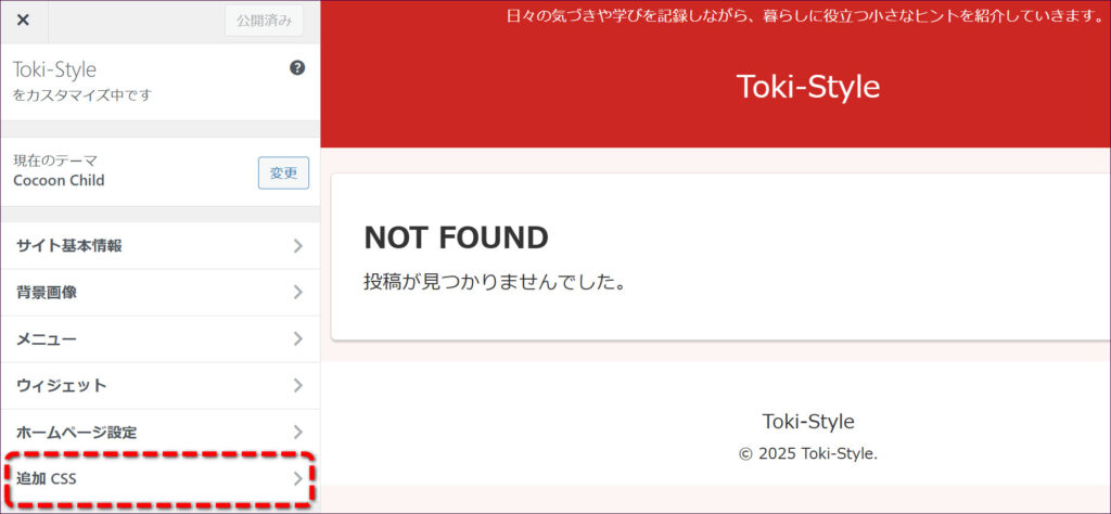 次に「追加CSS」をクリックします。