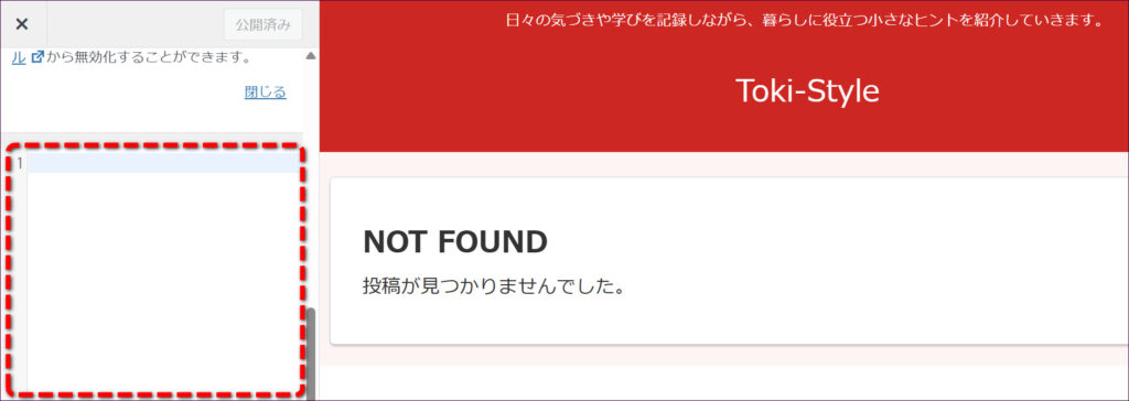 この入力欄に、「CSSコード」を入力することで、固定ページの日付だけを非表示にするなど細かい設定が行えます。