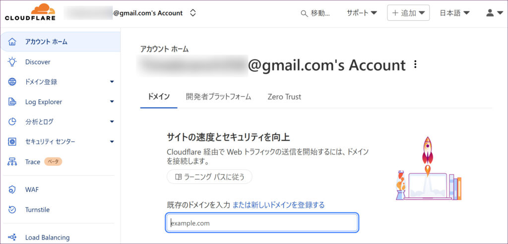 これで登録が完了し、自動的にCloudflareの管理画面に移動します。