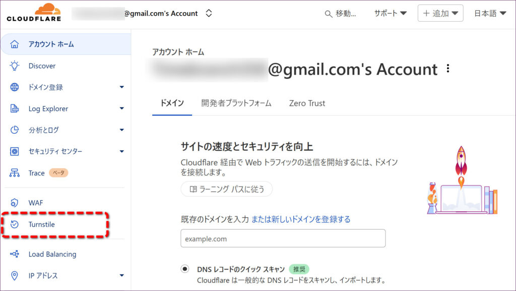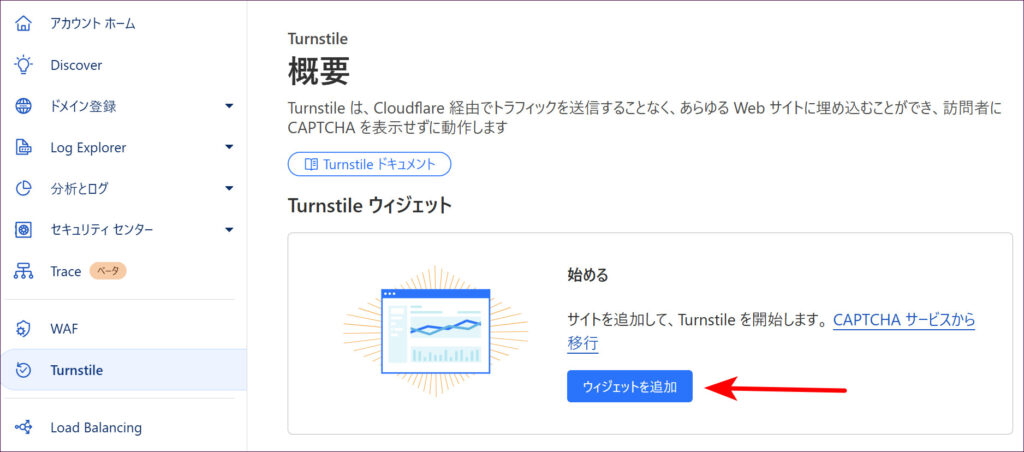 次に、画面左側メニューの「Turnstile」をクリックします。