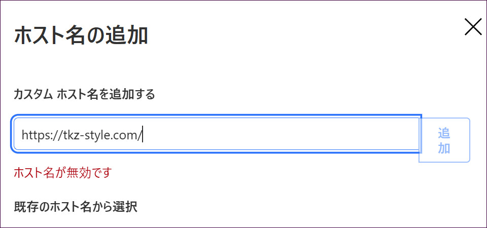 補足:入力するのは「ドメイン名」なので、URLをそのまま入力するとエラーが出ます。