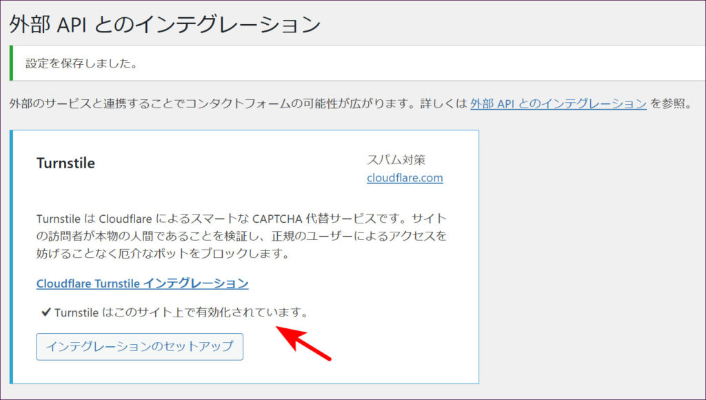 以上で設定は完了です。画面上には「Turnstileはこのサイト上で有効化されています。」と表示されます。